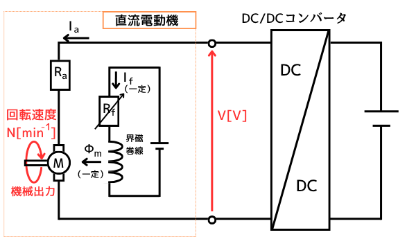 速度制御方法として、界磁磁束\(\Phi[Wb]\)を変化させる方法が最も簡単です。