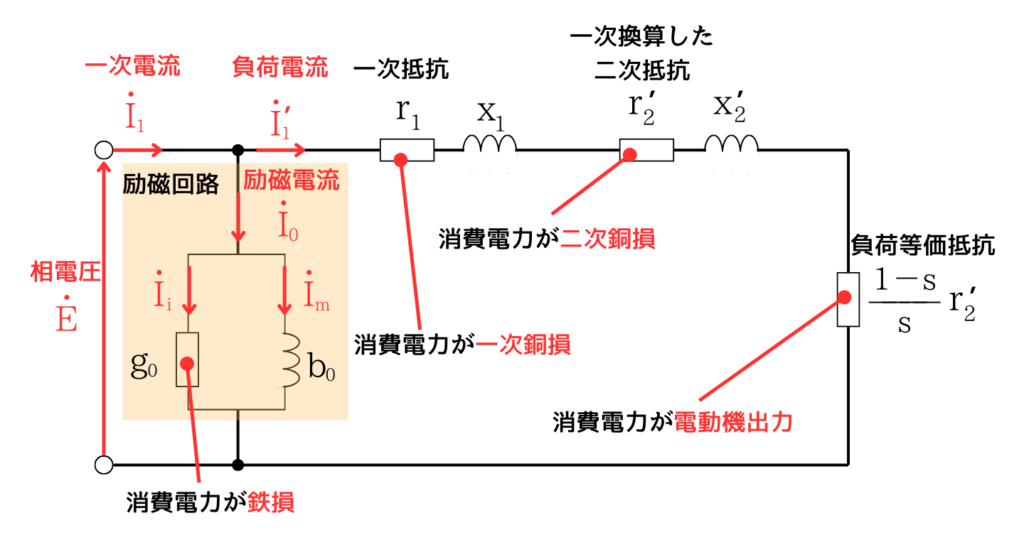 励磁回路は、誘導電動機内部に回転磁界を発生させる回路です。