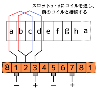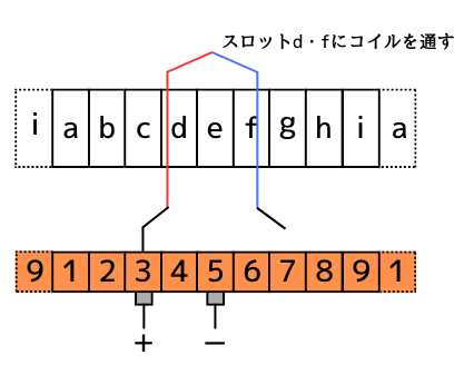 各コイル相互のつなぎ方には、\(\fbox{(オ)}=\)重ね巻と波巻とがある。