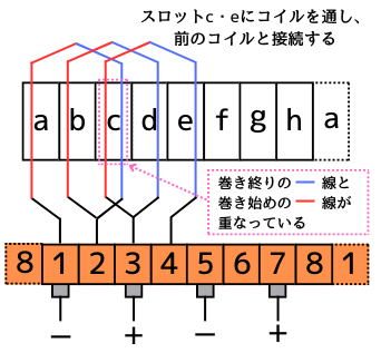 重ね巻は、磁極数に応じて並列回路が増えるため、並列巻と呼ばれることもあります。