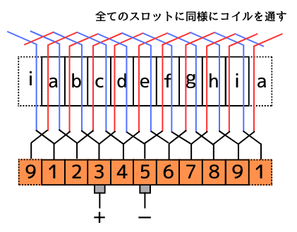 また、電機子巻線を収めるための多数のスロットが設けられている。