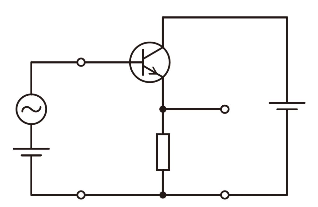 コレクタ接地増幅回路は、ベース端子に入力、エミッタ端子から出力されます。