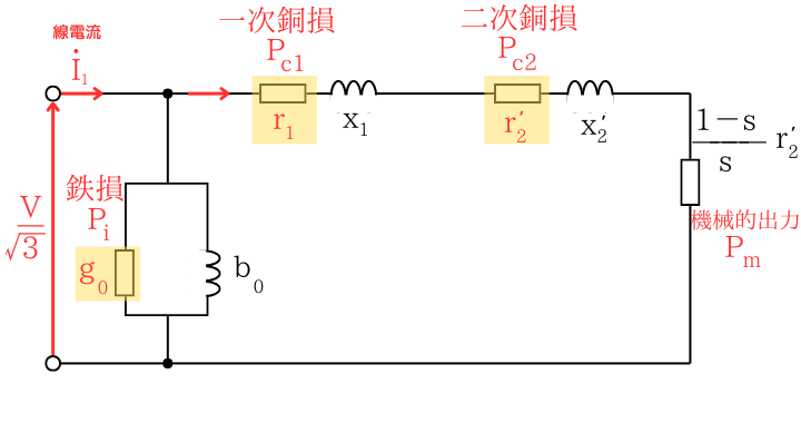 誘導電動機、鉄損、一次銅損、二次銅損、一次入力、二次入力