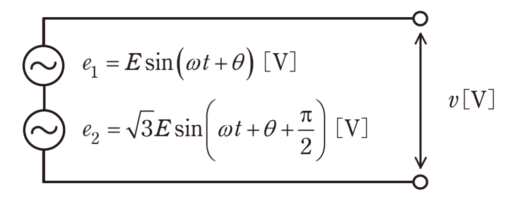 大きさと位相が異なる交流電源の直列接続時の合成電圧を求める計算問題です。
