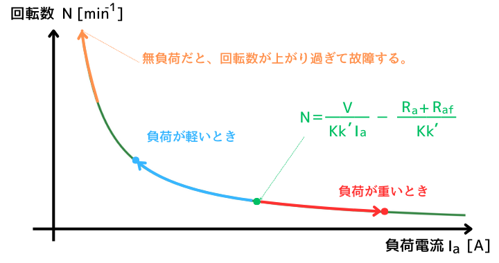 このことから、回転速度は負荷電流に対して反比例することがわかります。