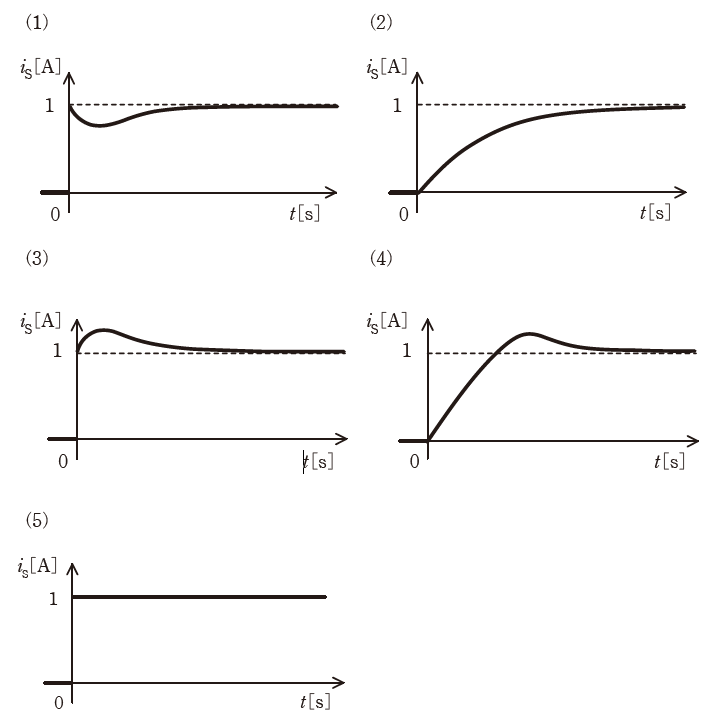 電流 \(i_S [A]\)の波形として最も適切に表すものを次の(1)~(5)のうちから一つ選べ。