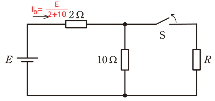 \(I_0=\frac{E}{2+10}=\frac{E}{12}\) …①