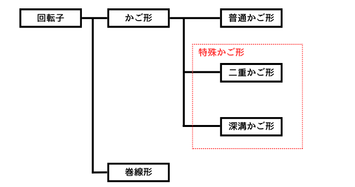 かご形回転子には、普通かご形の他に、特殊かご形があります。