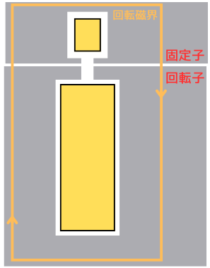 内側導体は、固定子から遠く、漏れ磁束が大きいです。