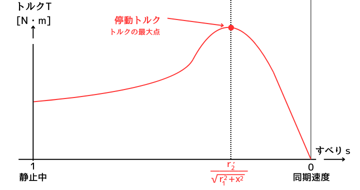 停動トルクを出力するときのすべり\(s\)と、トルクの大きさは式で表すことが出来ます。