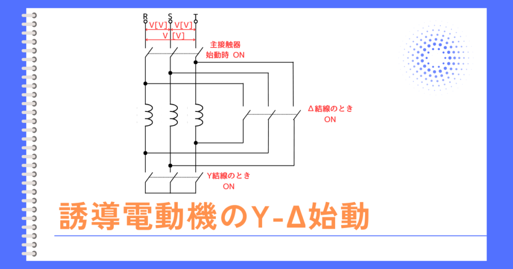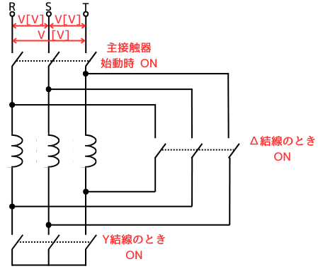 始動直後には、Y結線は、Δ結線に比べて電流値が1/3倍であるため、一次巻線をY結線で数秒間動かして加速させます。