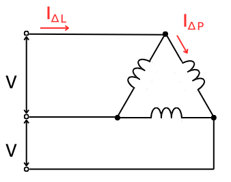 \(I_{ΔL}=\sqrt{3}I_{ΔP}=\sqrt{3}\frac{V}{Z}\) …②